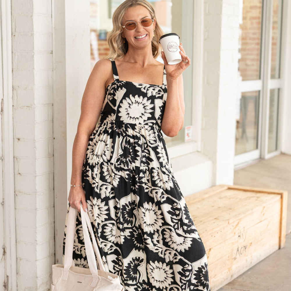 I am loving this skirt, looks nice with cream, black or olive green and is a beautiful soft natural feeling fabric, a nice length for winter, is lined and has an elastic waist which makes it so easy to wear and comfy. Bold floral print makes for a nice statement skirt. Great price too. Nice work Primp
